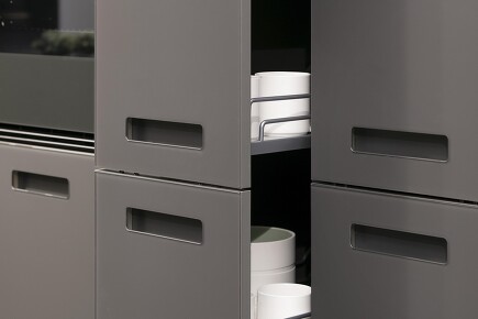 Smartglas-Fronten bestechen vor allem bei grifflosen Küchenfronten durch ihre hochwertige Optik, Stabilität und auch Pflegeleichtigkeit. Seine Anti-Finger-Print-Eigenschaft reduziert Fingerabdrücke und verringert dadurch den Reinigungsaufwand. In matter Ausführung schafft das samtige Design Wohlfühlatmosphäre und fasst sich wunderbar an.